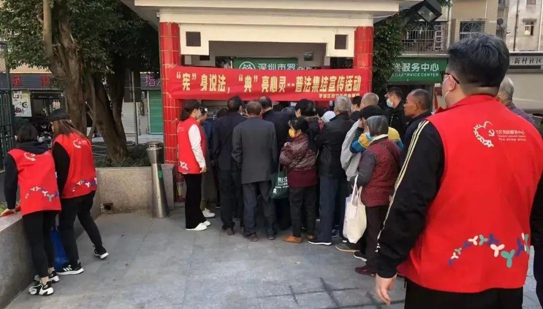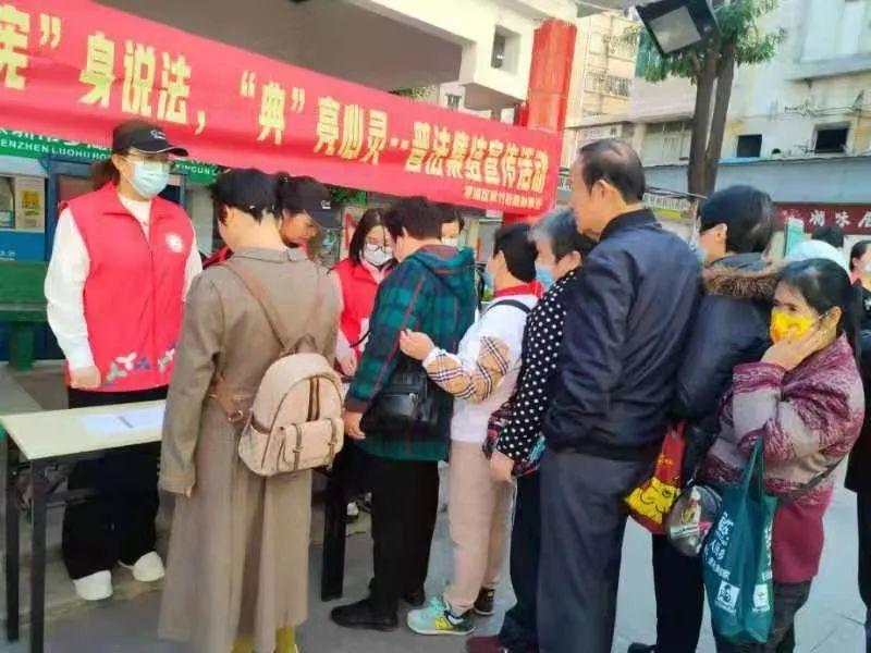 宪法是人民权利的保障书是维护人民利益的坚强后盾宪法与我们每个人都息息相关守护着我们生活的点点滴滴今天(12月4日)是第八个国家宪法日,本周也是第四个“宪法宣传周”为进一步弘扬宪法精神罗湖区、街道、社区三级妇联齐行动联动有关部门发动妇联执委、巾帼志愿者深入开展法治宣传来看看部分精彩活动南湖街道12月3日上午,南湖街道妇联联合9个社区妇联,在12.4国家宪法日即将到来之际,在罗湖创意文化广场开展普法宣传暨创建平安家庭宣传活动。活动主要围绕《民法典》、《反家庭暴力法》、《妇女权益保障法》、《劳动法》、《未成年人保护法》等法律法规知识,向居民群众发放宣传单、宣传手册,现场提供法律咨询服务。邀请律师为居民和巾帼志愿者们讲解宪法知识,并一同来到各个住宅小区门口,发放法律宣传资料,耐心细致地解答群众提出的法律问题