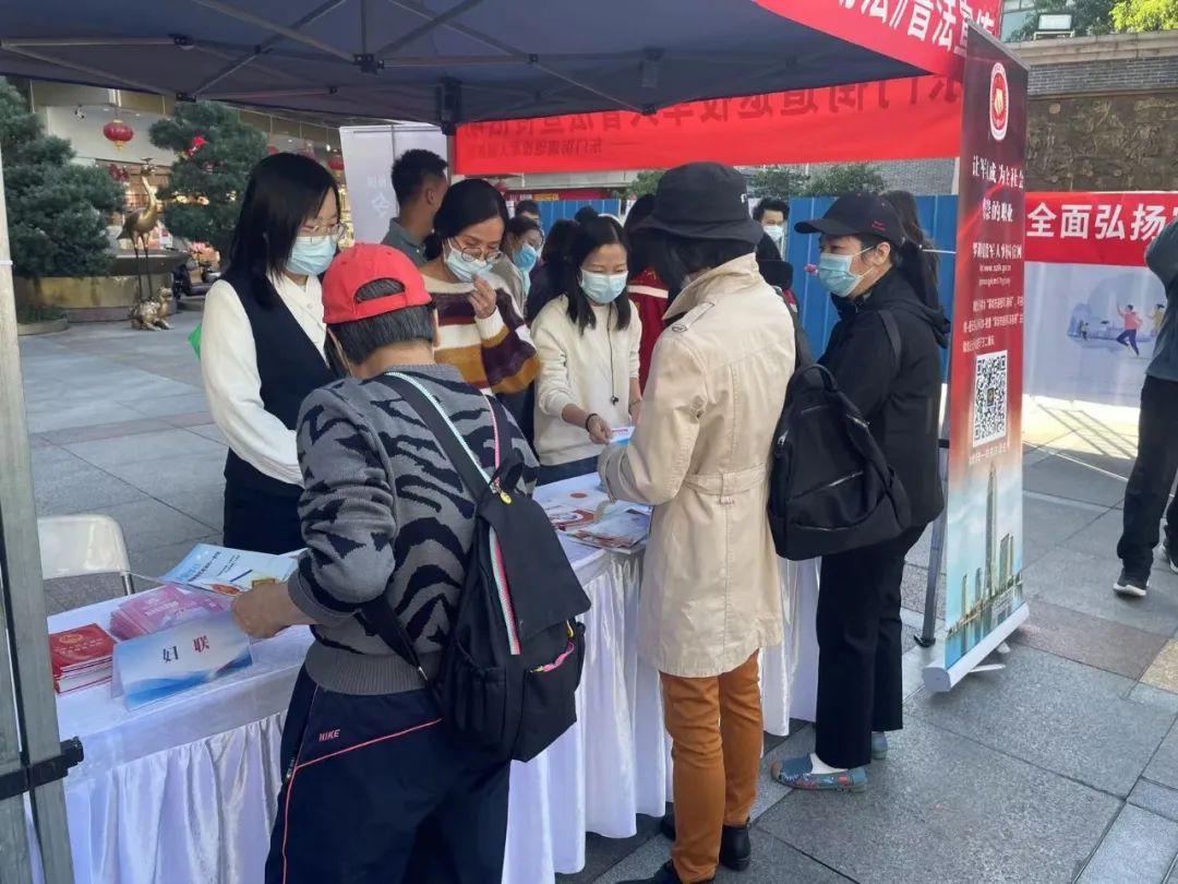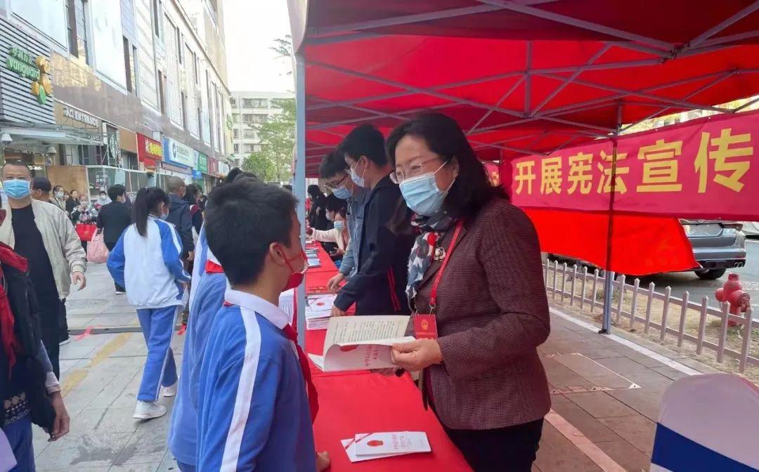 为大力加强宪法学习宣传,弘扬宪法精神,东门街道妇联联合行政服务大厅等相关部门结合街道“宪法宣传周”活动,采取多形式开展法治宣传活动,助力优化东门营商环境。