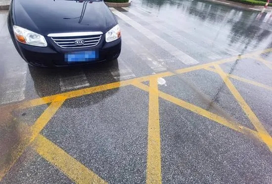 没压到黄色网格线,路口停车可以吧?(将被处罚)