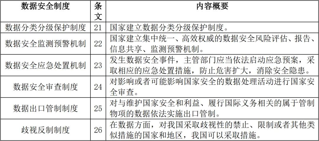 《数据安全法》第3章专章规定了6项数据安全制度,具体为: