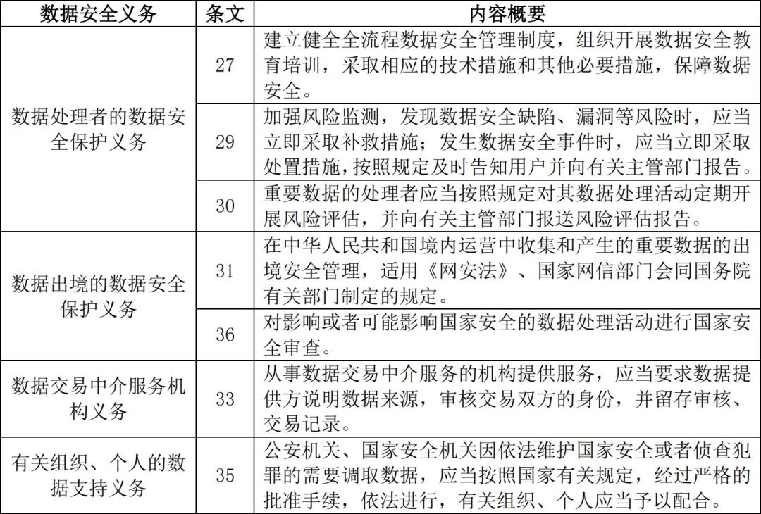 《数据安全法》第4章专章规定了数据安全义务,具体可分为以下4类: