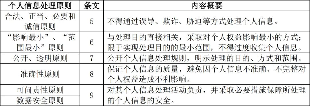 《个人信息保护法》的出台,确立了多项处理个人信息过程中重要的法律原则,具体为:
