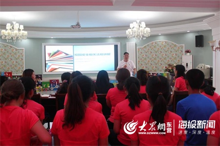 大众网·海报新闻东营6月13日讯(记者 于文豪 通讯员 郑艳敏 林红娟)自全国“安全生产月”活动启动以来,东营市东营区实验幼儿园开展了一系列形式多样的宣传教育活动。6月12日,幼儿园特邀请山东恪诺律师事务所的石艳田律师,为全园教职工进行法律法规培训活动。