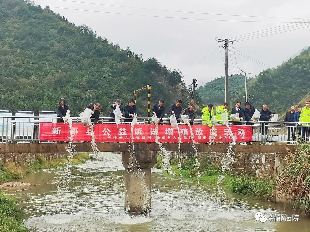 10月15日上午,邵阳市中级人民法院、新邵县人民法院、县人民检察院、县农业农村局、龙溪铺镇干部和被告人晏某等,共同将与损害赔偿数额等值的250余公斤鱼苗投入新邵县龙溪河楠木村河段。