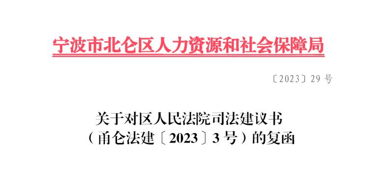 宁波市北仑区人力资源和社会保障局收到司法建议后高度重视,迅速采取有力措施整治招用童工违法行为,切实加强涉未成年人劳动合法权益保护。
