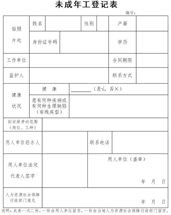 (三)安排未成年工健康检查,填写《未成年工健康检查表》《未成年工登记表》,向所在地的县级以上人力资源社会保障行政部门办理登记;