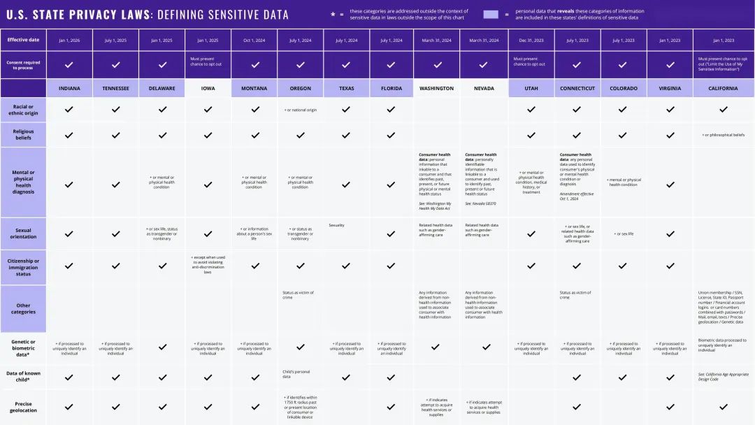 在过去几年中,各州颁布了许多隐私法,包括广泛的消费者数据隐私法、儿童隐私法、消费者健康数据隐私法和数据经纪人法。在如此短的时间内颁布如此多的隐私法,给企业带来了大量的合规期限。