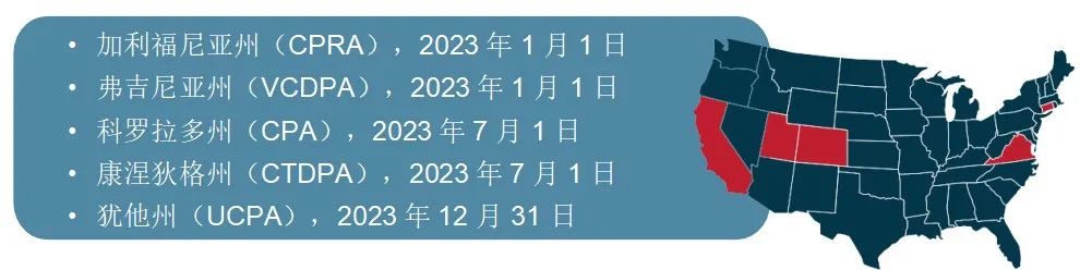 过去的2023 年是隐私保护的重要一年,以下五个州的隐私保护法开始生效: