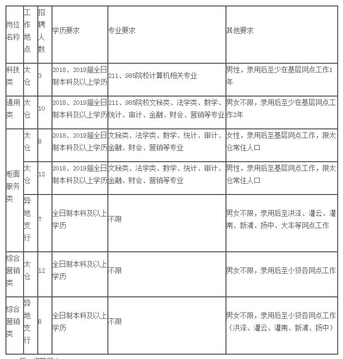 太仓农商行招聘(60人)