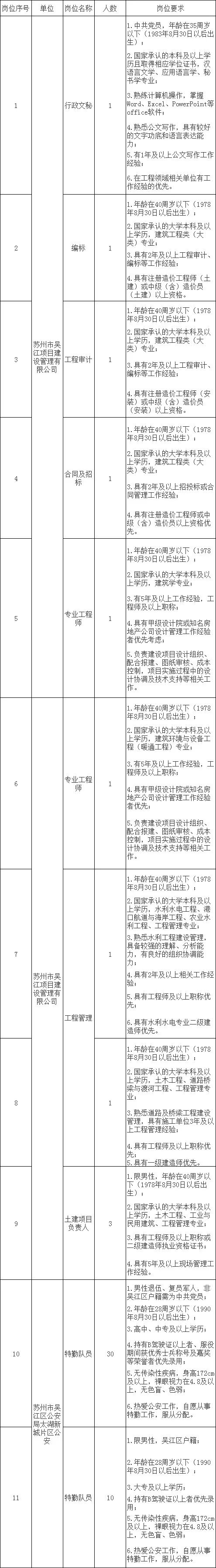 吴江经济技术开发区行政审批局招聘(10人)