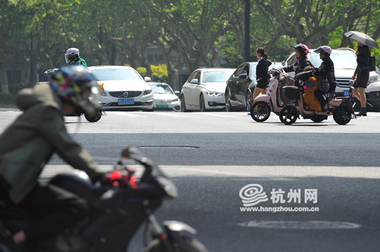 杭州网讯 今年,杭州市将重拳整治电动自行车交通违法行为,4月15日,杭州正式实施新的电动自行车管理标准。即日起,对驾驶人和乘坐儿童不戴头盔、逆向行驶、闯红灯、不按规定载人等重点电动自行车交通违法行为,将予以处罚。