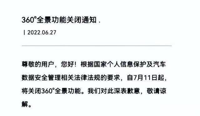 而之所以要关闭这一功能,跟国家去年10月1日实行的《汽车数据安全管理若干规定(试运行)》有关。其中提到包含人脸信息、车牌信息等的车外视频、图像数据属于重要数据。汽车数据处理者在开展汽车数据处理活动中应坚持车内处理、脱敏处理等原则。
