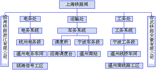 1)上海铁路局。上海铁路局为铁道部所属的18个铁路局(公司)之一,管辖范围跨安徽、江苏、浙江和上海四省(市),运营里程 7670公里 (其中:时速 200公里 及以上营业里程 2378公里 ;时速 250公里 及以上营业里程 1777公里 )。该局下设运输站段60个,图定开行列车1774对(其中客车541对、包括动车组列车295对,货车1233对)。事故涉及的沿海调度台、温州南站、温州电务车间和温州南线路工区为其下属站段管辖。