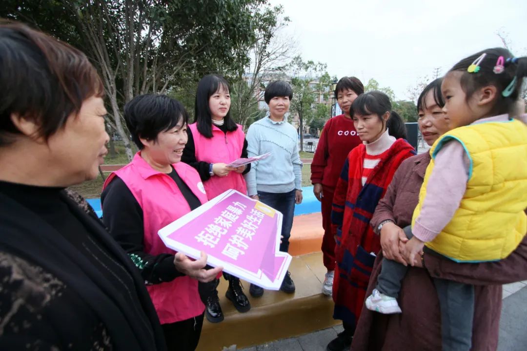 横街镇妇联组织巾帼志愿者、巾帼网格员在国际反家暴日当天走进村居、公园、书吧等地发放反家暴宣传资料,讲解反家暴知识,提高了村民对反家暴知识的知晓率,提高妇女群众的维权意识、反家暴意识,倡导家庭成员互相尊重、和谐相处,树立健康、文明的婚姻家庭观念。