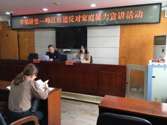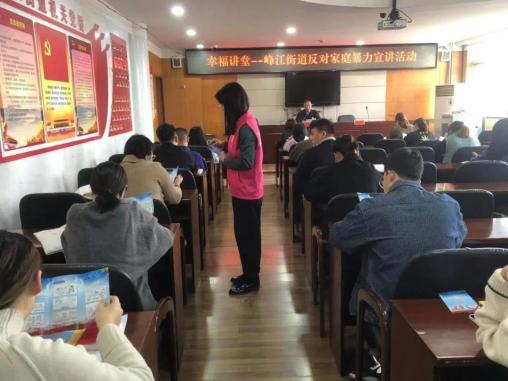 11月25日是“国际消除对妇女的暴力日”,为了普及《中华人民共和国反家庭暴力法》,提高大家对反对家庭暴力的重视,上午,峰江街道妇联举行“幸福讲堂——反对家庭暴力”宣讲活动。