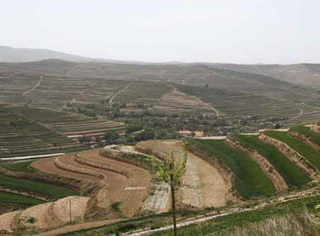 山区坡改梯建设稳产良田。图片摄于甘肃省。摄影/杨邦杰