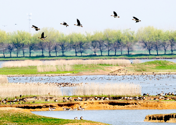 武汉府河湿地保护区水资源丰富,生态良好,生物多样性丰富,每年都会吸引数万只来自中国东北或西伯利亚的候鸟在此停歇越冬 ( 图片来源:视觉中国)