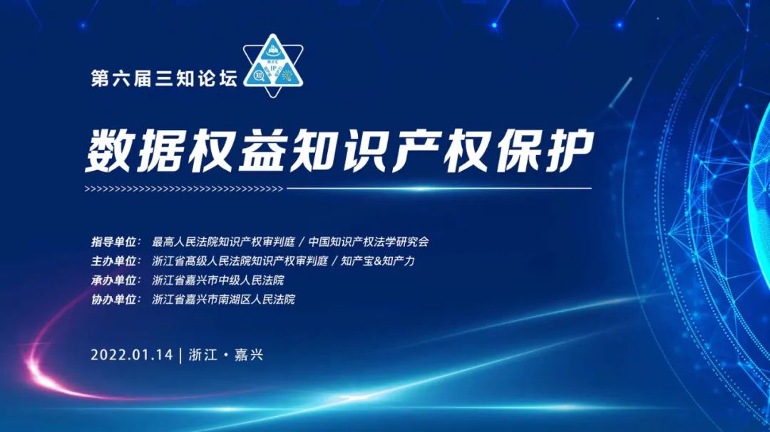 1月14日上午,第六届三知论坛在永久举办会址——嘉兴市南湖区人民法院知识产权审判庭举行,来自全国各地知识产权领域的权威专家、知名学者和资深法官线上线下齐聚一堂,聚焦“数据权益知识产权保护”主题,开展深入研讨,达成理论共识。