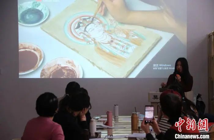 2023年2月,在敦煌研究院莫高学堂,研学导师给学员讲授敦煌壁画临摹技法。 张晓亮 摄