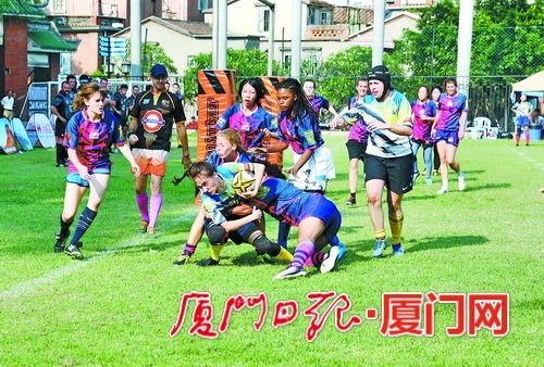 鼓浪屿人民体育场内,国际橄榄球友谊赛激情上演。(资料图/鼓浪屿街道 提供)