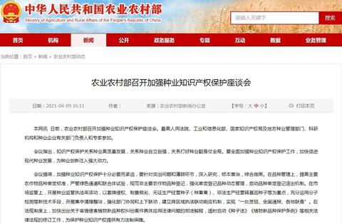 中国网4月9日讯 据农业农村部网站消息,日前,农业农村部召开加强种业知识产权保护座谈会。会议强调,在法规制度上,加快出台关于审理侵害植物新品种权纠纷案件具体应用法律问题的司法解释,适时启动《种子法》《植物新品种保护条例》等相关法律法规的修订工作,为保护种业知识产权提供有力法制保障。
