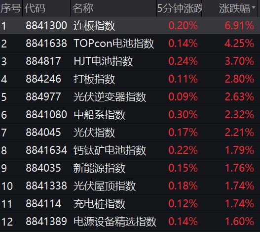 个股方面,帝科股份上午成功实现20CM涨停,宁波能源、桂东电力、钧达股份等涨停,捷佳伟创涨近10%。