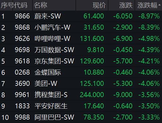 市场全线走低,零售、汽车、消费下滑,蔚来、小鹏汽车跌逾8%。
