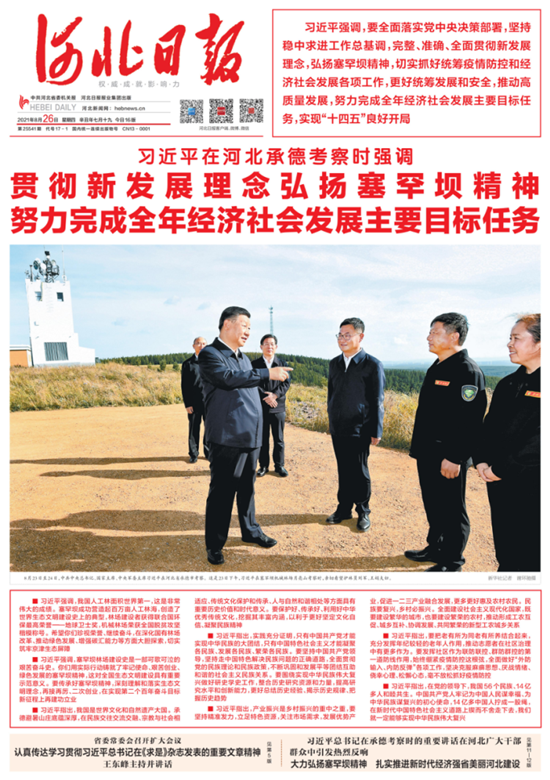 《河北日报》是中共河北省委机关报,是河北省首席新闻媒体,是河北最具影响力的主流政经大报。《河北日报》创刊于1949年8月1日,由抗日战争时期创办的《冀南日报》《冀中导报》《冀东日报》合并而成。创刊号所用报头是毛主席于1948年5月在西柏坡题写。1964年11月17日,毛主席再次为《河北日报》题写了新报头,并沿用至今。