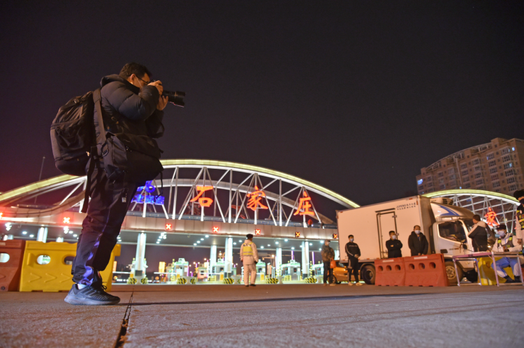 河北日报社记者赵杰在石家庄裕华路高速口采访拍摄