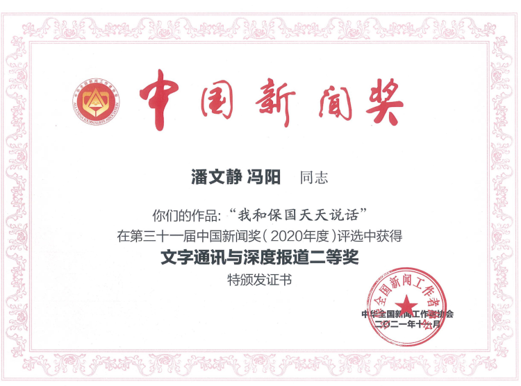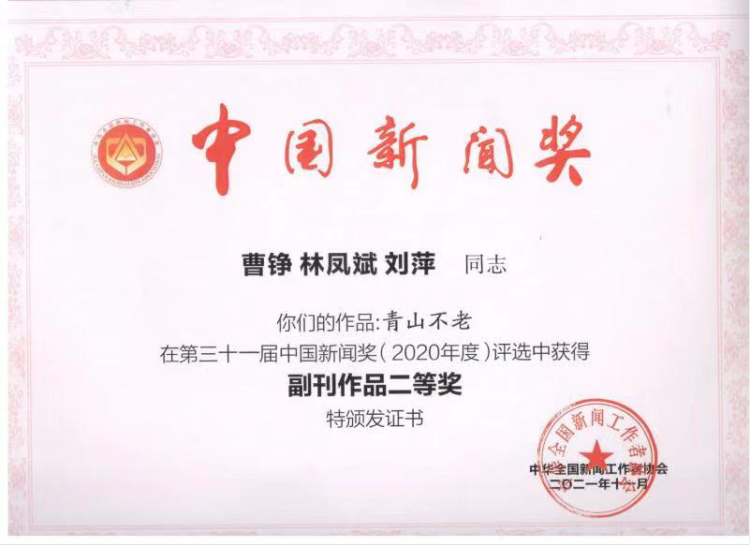通讯《“我和保国天天说话”》、报告文学《青山不老》获中国新闻奖二等奖