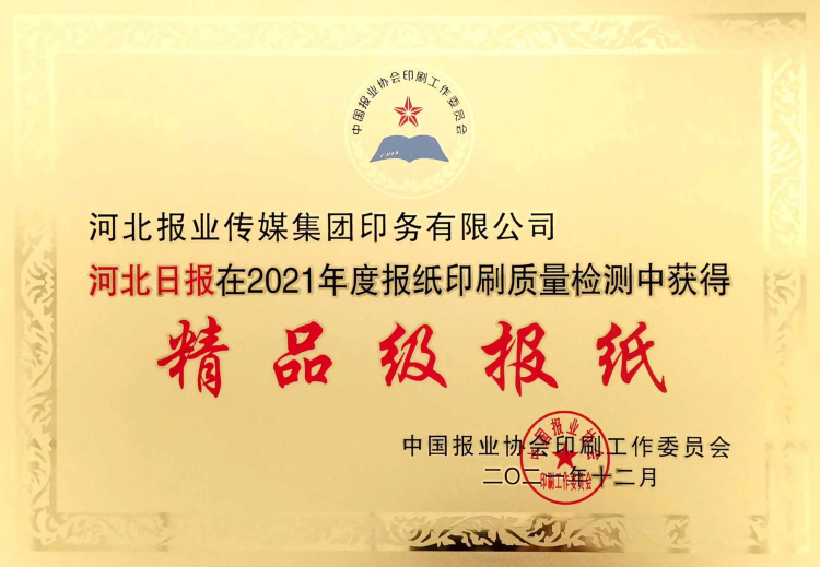 《河北日报》获全国报纸印刷质量最高级别奖“精品级报纸”称号