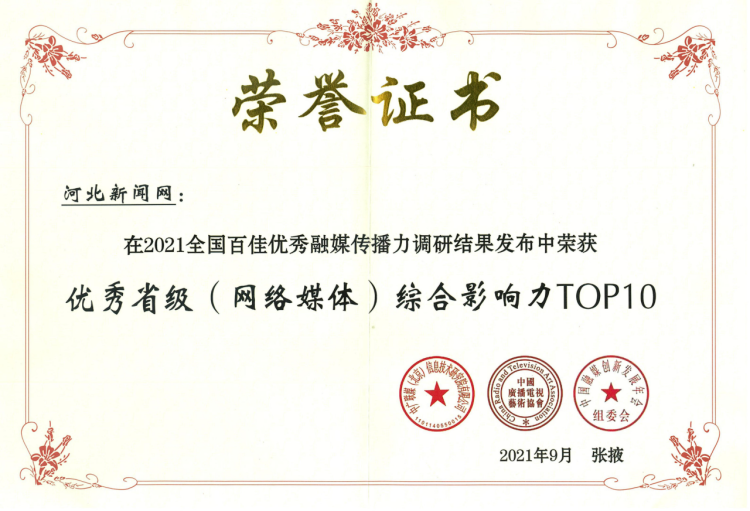河北新闻网获评“2021优秀省级(网络媒体)综合影响力TOP10”