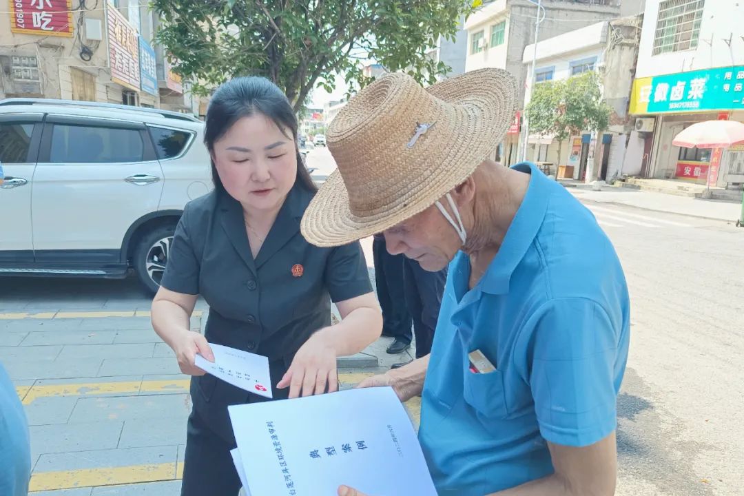 2024年8月15日是第二个全国生态日,值此之际,罗田法院民二庭和匡河人民法庭组织干警走上匡河街头、走进群众,开展了一场生态环境保护普法宣传活动,罗田法院党组成员、副院长汪俊、审判委员会专职委员廖小刚参加活动。村民们纷纷参与交流,一派热闹景象。