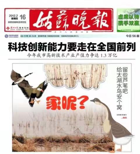 2012年姑苏晚报报道了太湖芦苇收割与鸟类栖息地减少的现象。