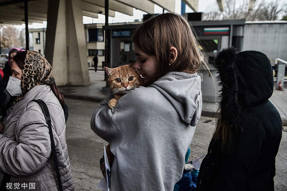 当地时间2022年3月7日,希腊与保加利亚接壤的普罗马乔纳斯(Promachonas)边境站,乌克兰难民抵达当地并前往难民接待中心。