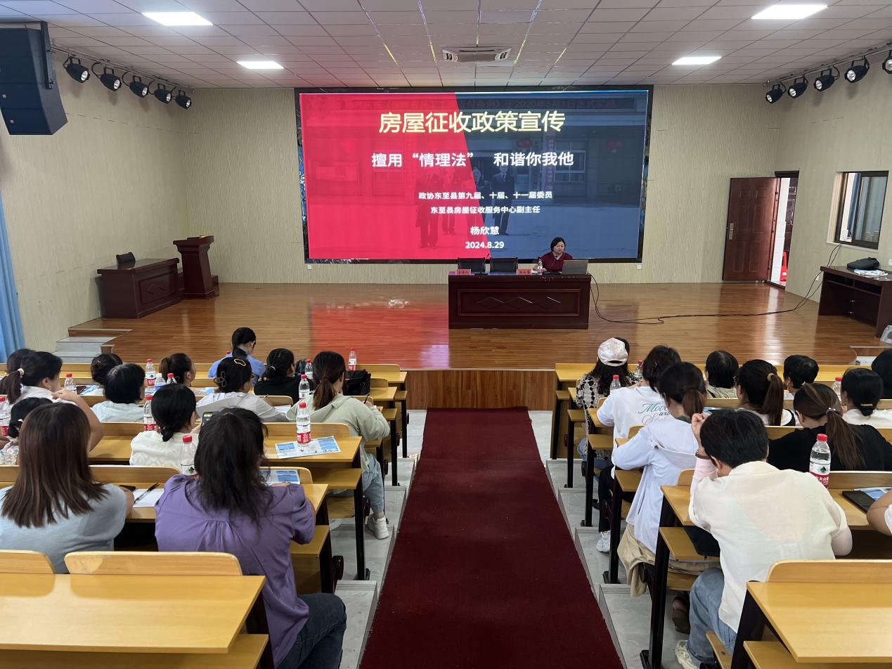 培训还邀请了东至县房屋征收服务中心党组成员、副主任杨欣慧为学员们进行劳动权益保障、房屋征收政策等知识宣讲,培训现场讲师通过实际案例讲解,引导学员树立学法、懂法、守法、用法理念,提高了学员们劳动保护知识和维权意识。她将自己在工作开展过程中的创新做法和工作理念分享给大家,热情洋溢的表达感染着现场的每一位学员。