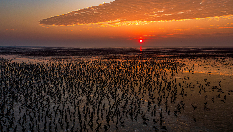 山东黄河三角洲自然保护区内的候鸟集群张晓龙摄(国家林草局供图)