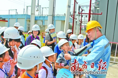 在供电局工作人员带领下,小记者们实地参观了220kV群星变电站和江门电网节能展厅,亲身体验“触电”之旅。