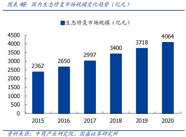 资本也在积极跟进。国盛证券在一份研究报告中指出,十三五期间,国家生态文明建设不断升级,进一步强调加强生态系统保护修复;政策持续关注下,生态行业资本逐渐活跃,生态治理市场发展迅速。据中商产业研究院估算,2020年生态修复治理市场规模已达4064亿元,近五年年符合增长率达11.5%。