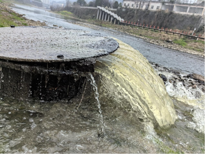 图3  2024年3月4日,督察组暗查发现,恩施市大沙坝污水处理厂沿江污水管网大量生活污水溢流排入清江