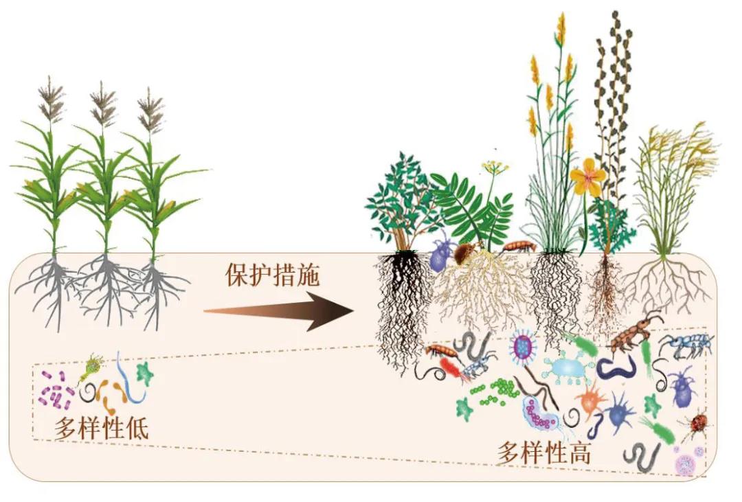 土壤生物多样性及其所提供的生态系统服务对全球生态系统至关重要,在解决粮食安全、环境污染、气候变化及公共卫生等全球重大问题方面起着关键作用。由于全球气候变化和人类活动的干扰,土壤生物多样性下降风险加剧,要多管齐下保护土壤生物多样性。