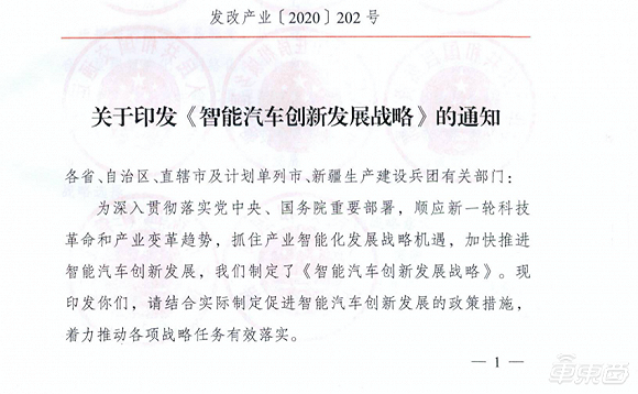 车东西2月23日消息,日前,网上流传出一份发改委、工信部等11部委联合印发的《智能汽车创新发展战略》文件(以下简称《战略》),为智能汽车产业的未来发展指明的方向。