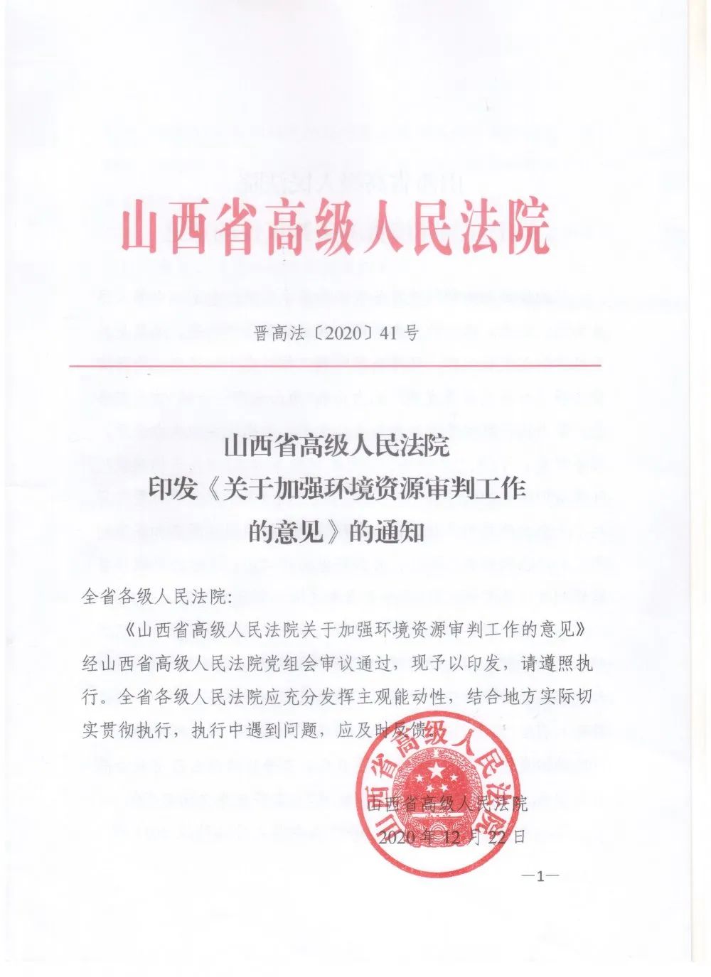 山西法院深入贯彻落实习近平生态文明思想,认真落实2020年5月习近平总书记视察山西时提出的“抓好‘两山七河一流域’生态修复治理,扎实实施黄河流域生态保护和高质量发展国家战略”的重要讲话重要指示,积极履行环境资源审判职能,不断加强和创新环境资源审判工作,为推进新时代生态文明建设、建设美丽山西提供有力司法服务和保障。