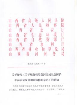 省高院出台《关于服务保障黄河流域生态保护和高质量发展规划纲要的意见》,整合黄河流经的4市19县人民法院审判力量,建立黄河流域环境资源审判协调机制,沿黄各基层人民法院依托人民法庭、巡回法庭,在黄河、汾河干支流河道、林木、湿地等生态环境重点区域以及风景名胜区、文化旅游区域设立巡回审判工作点,生态环境司法保护与修复实现常态化。
