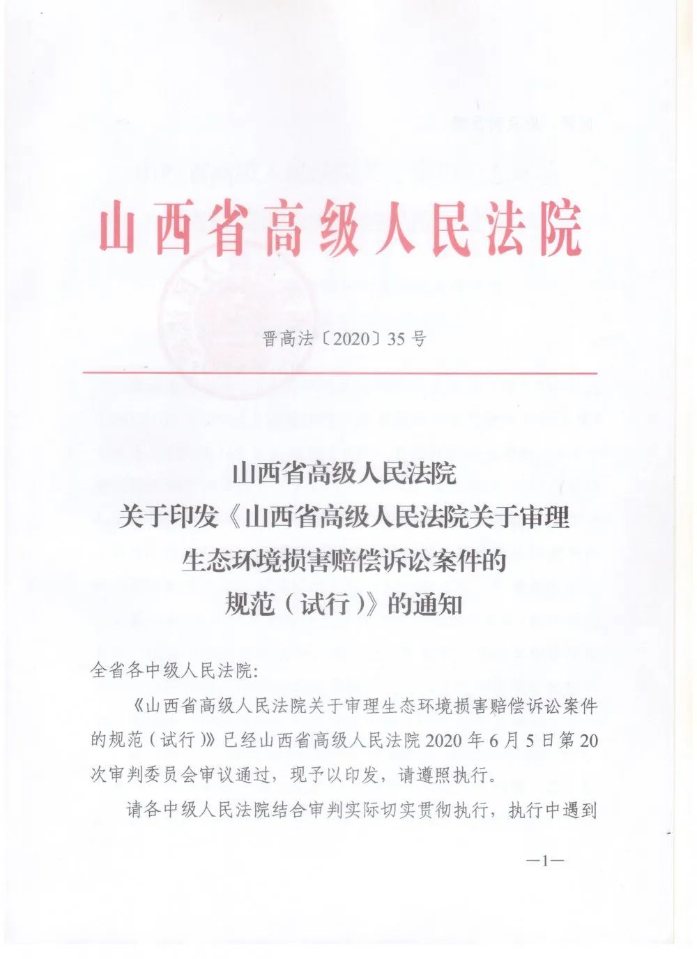 省高院建立环境资源审判工作平台,实现了全省法院环境资源案件的立案识别和系统管理,出台《关于加强环境资源审判工作的意见》《关于审理生态环境损害赔偿诉讼案件的规范》,对环资审判受案范围、审判理念和审判规则、环资类案件执行以及生态环境损害赔偿诉讼等进行规范,立足山西实际构建成熟、科学、系统的审判规则体系。