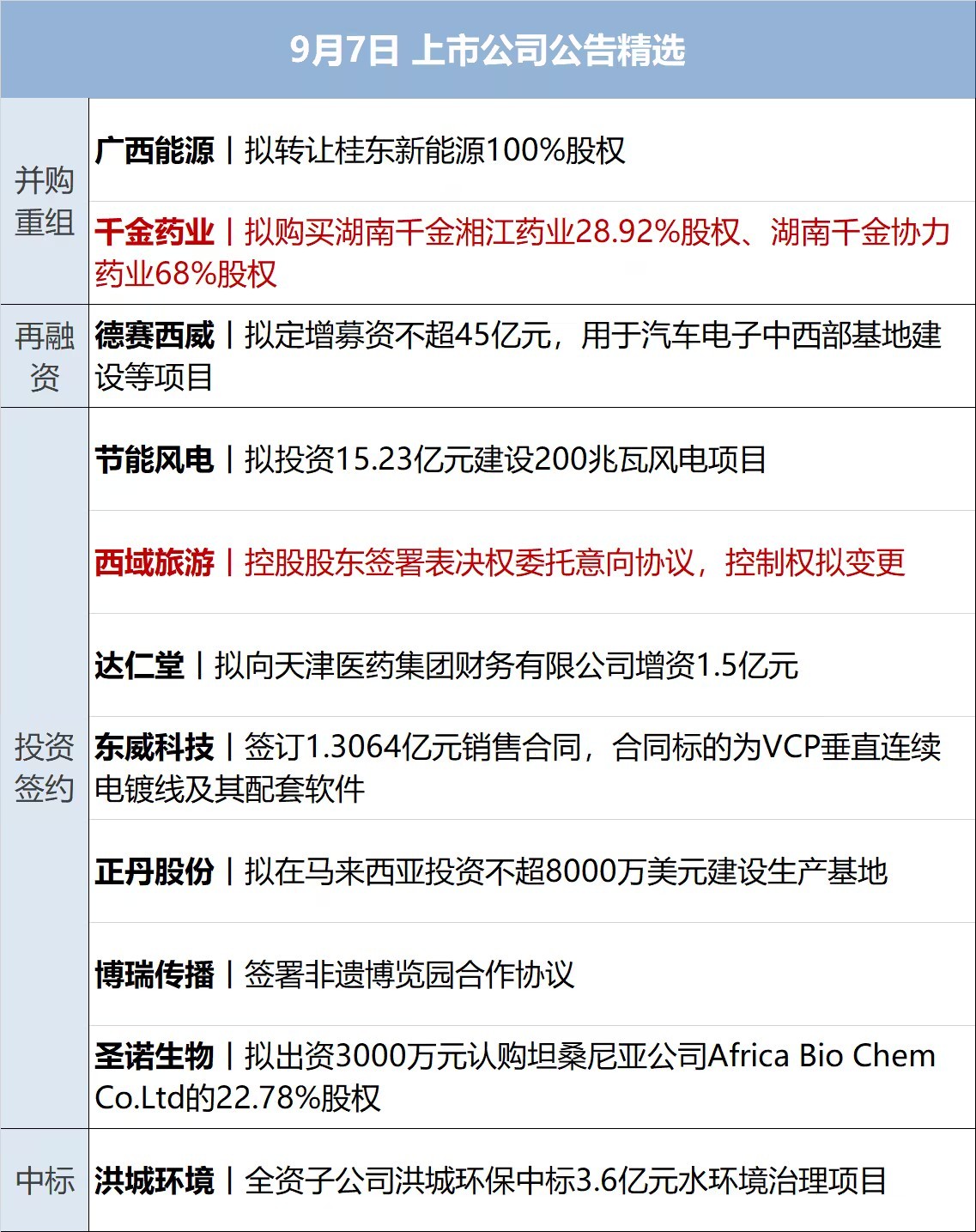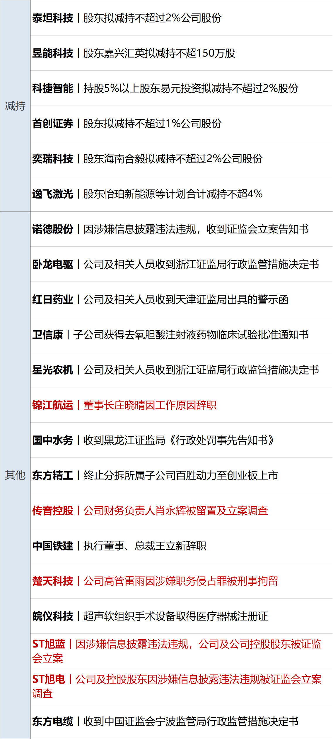 诺德股份(600110,股价:3.02元,市值:52.74亿元)、ST旭电(000413,股价:0.37元,市值:20.84亿元)、ST旭蓝(000040,股价:1.4元,市值:20.82亿元)、嘉麟杰(002486,股价:1.63元,市值:13.56亿元)、华铭智能(300462,股价:8.98元,市值:16.27亿元):9月6日晚,诺德股份、ST旭电、ST旭蓝、嘉麟杰、华铭智能五家公司披露了公司或股东被证监会立案。