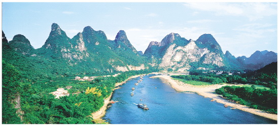 ▲游船在秀美的漓江中航行。桂林持续打好“蓝天”“碧水”“净土”三大保卫战,为打造世界级旅游城市营造良好生态环境。 通讯员林文洪 摄