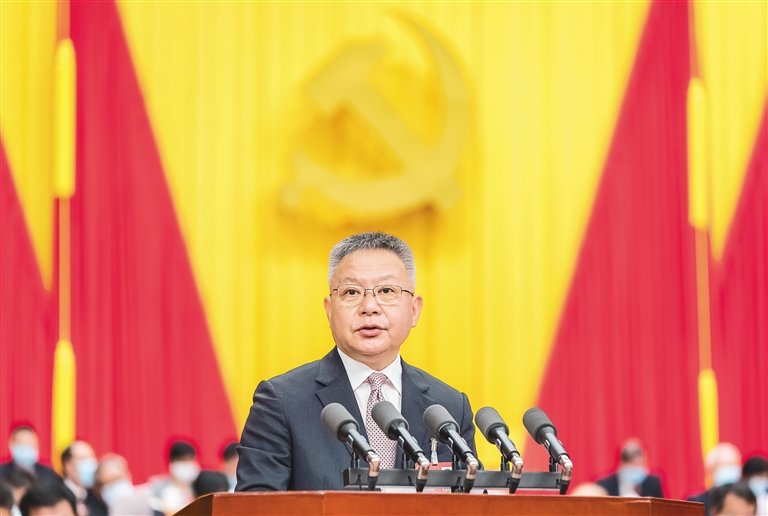 4月26日,沈晓明同志在中国共产党海南省第八次代表大会上作报告。海南日报记者 宋国强 摄