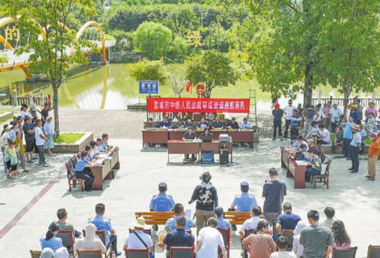 2023年7月,汪某某驾驶的重型货车发生侧翻,车上所载的涂料流入道旁沟渠,导致下游青峰岭水库的饮用水源受污染。经鉴定,涂料泄漏与水质受损存在因果关系。宣城市生态环境局与汪某某就损害赔偿未达成一致,将其诉至法院。庭审中,原告详细陈述水质受损事实,并提供相关证据材料。被告汪某某对自己的违法行为表示悔意,愿意承担相应的赔偿责任。庭审结束后,法官以案释法,就饮用水源地保护的相关法律法规进行宣讲,引导旁听群众提升生态环境保护意识。图为巡回审理现场。(周瑞平 洪骏 刘爽)