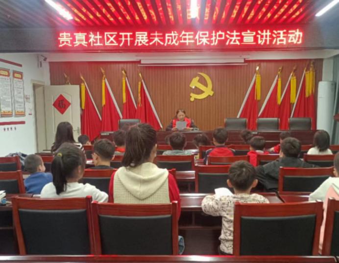 为进一步加强社区法治建设,结合世界读书日,2024年4月22日,贵真社区在二楼会议室组织学生及家长50余人,开展《未成年人保护法》宣讲活动,此次宣讲的目的是引导学生遵纪守法、明理向善,树立社会主义法治理念和法治意识。